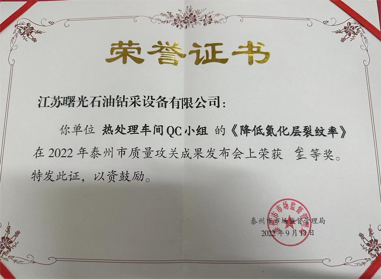 泰州市質量攻關三等獎