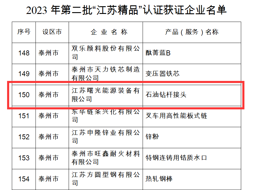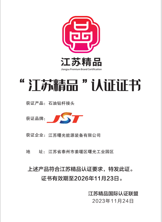 本次榮獲“江蘇精品”認(rèn)證,不僅是對我司石油鉆桿接頭產(chǎn)品工藝的認(rèn)可,更是對我司長期在石油設(shè)備制作領(lǐng)取所取成就的肯定。